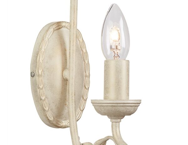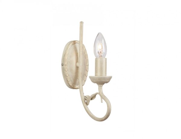 Kinkiet z kolekcji Olivia posiada oprawę z metalu w kolorze kości słoniowej oraz złota. Jest to ręcznie wytworzona i wykończona lampa z jednym źródłem światła. Szerokość lampy wynosi 8,5 cm a wysokość konstrukcji 27 cm. Najdalej wysunięta część znajduje się w odległości 17,5 cm od ściany. Odpowiednia do żarówki 60W E14. Przewidywany czas realizacji ok. 2 tygodnie. W związku z tym, że produkt jest wykonywany i sprowadzany pod indywidualne zamówienie, klientowi nie przysługuje 14-dniowe prawo do odstąpienia od umowy.