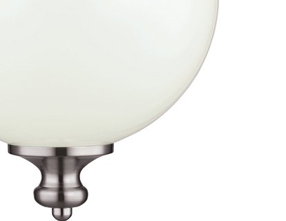 Lampa wisząca z kolekcji Parkman posiada oprawę z metalu w kolorze szczotkowanej stali z jednym źródłem światła pod mlecznym kloszem w kształcie kuli. Średnica lampy wynosi 21,6 cm a wysokość konstrukcji 37,8 cm. Jej długość można regulować za pomocą łańcuszka i kształtuje się od 53 cm do 205,4 cm Odpowiednia do żarówki 60W E27. Przewidywany czas realizacji ok. 2 tygodnie. W związku z tym, że produkt jest wykonywany i sprowadzany pod indywidualne zamówienie, klientowi nie przysługuje 14-dniowe prawo do odstąpienia od umowy.