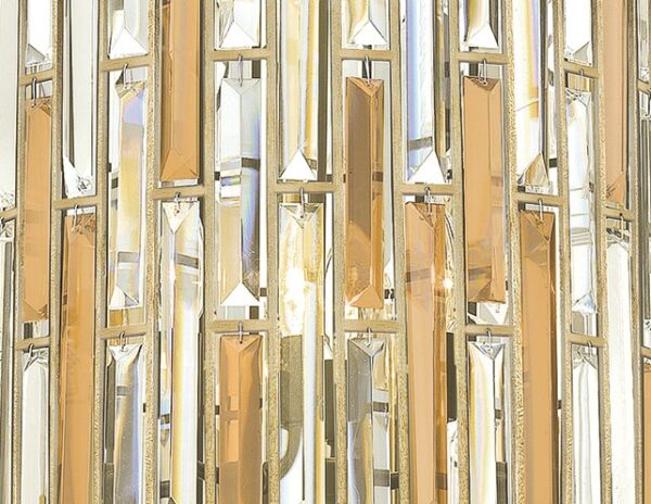 Nietuzinkowa lampa wisząca z kolekcji Gemma wykończona w odcieniu złota. Posiada trzy źródła światła ukryte pod kloszem. Abażur lampy w kształcie walca ozdobiony prostokątnymi kryształkami w naturalnych odcieniach. Całość zachowana w bogatym tonie stylu współczesnego. Średnica lampy wynosi 40,6 cm a wysokość konstrukcji 40 cm. Długość lampy można regulować przy pomocy dołączonych rurek i kształtuje się od 62,2 cm do 154,3 cm. Odpowiednia do żarówek o max. mocy 60W każda, gwint E14. Przewidywany czas realizacji ok. 2 tygodnie. W związku z tym, że produkt jest wykonywany i sprowadzany pod indywidualne zamówienie, klientowi nie przysługuje 14-dniowe prawo do odstąpienia od umowy.