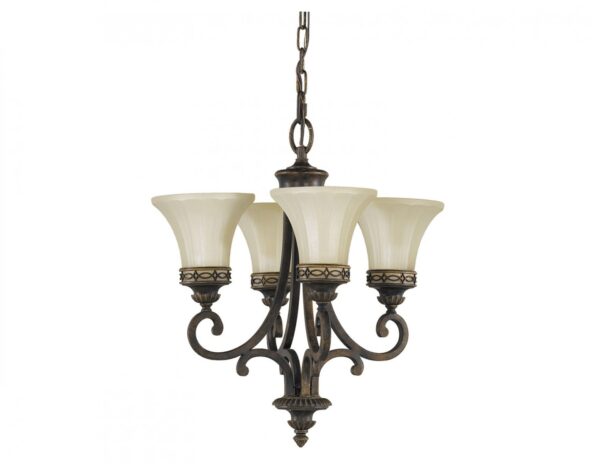 Przepiękny żyrandol z kolekcji DRAWING ROOM wykonany jest w kolorze antycznego brązu, połączonego z jasnymi kloszami. Wyposażony w cztery punkty świetlne. Lampa zawiera łańcuch i podsufitkę, dzięki czemu ma podwójne zastosowanie jako zwis lub plafon. Średnica żyrandola wynosi 45,7 cm, wysokość 54,5 cm. Posiada regulację na przewodzie od 625 cm do 2150 cm. Źródło światła: 4x 100W E27. Przewidywany czas realizacji zamówienia ok. 2 tygodnie. W związku z tym, że produkt jest wykonywany i sprowadzany pod indywidualne zamówienie, klientowi nie przysługuje 14-dniowe prawo do odstąpienia od umowy.